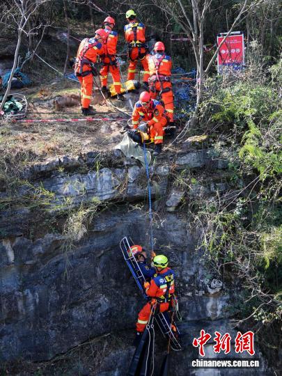 图为举动现场模仿崖壁援救。袁唐伟 摄